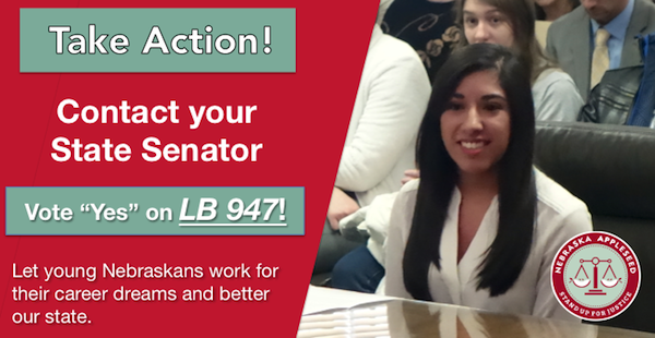 Your voice can count today, too! Please tell your senator to support LB 947 because Nebraska has a brighter future when all of these talented young people are able to grow careers and build their skills here in the Cornhusker State.
