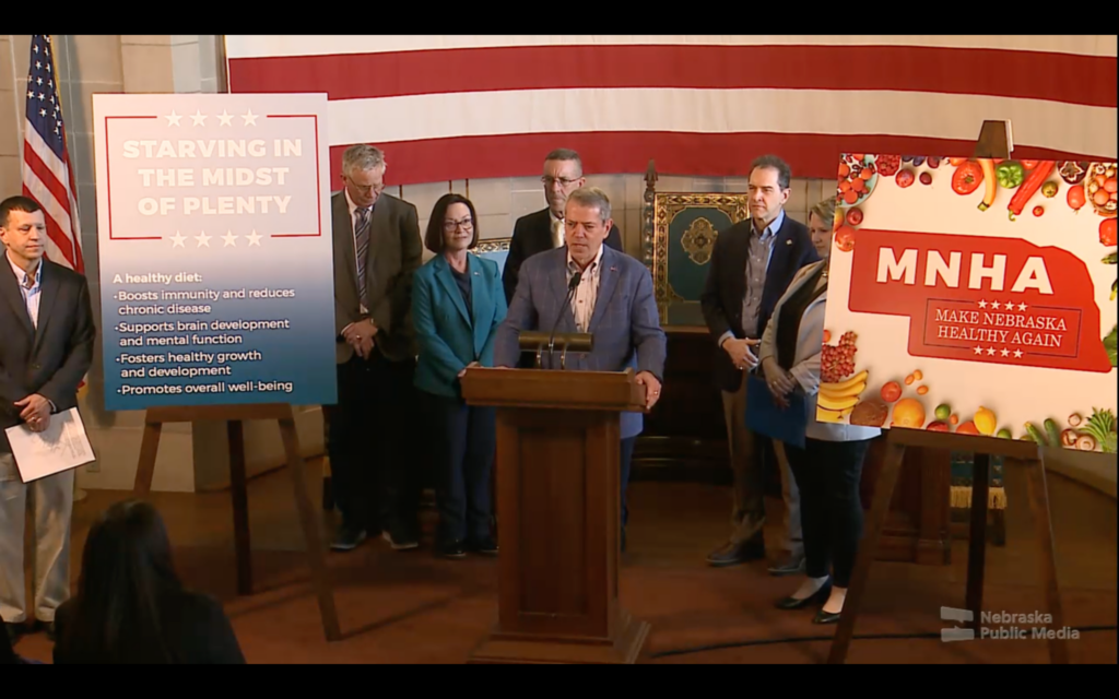 Image of Governor Pillen at press conference announcing food restrictions for Nebraska SNAP on April, 7 2025