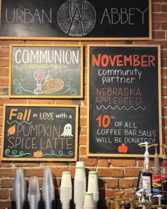 The Urban Abbey in Omaha has selected Nebraska Appleseed to be its nonprofit partner for the month of November. All month long, 10% of all coffee bar sales will be donated to Nebraska Appleseed!